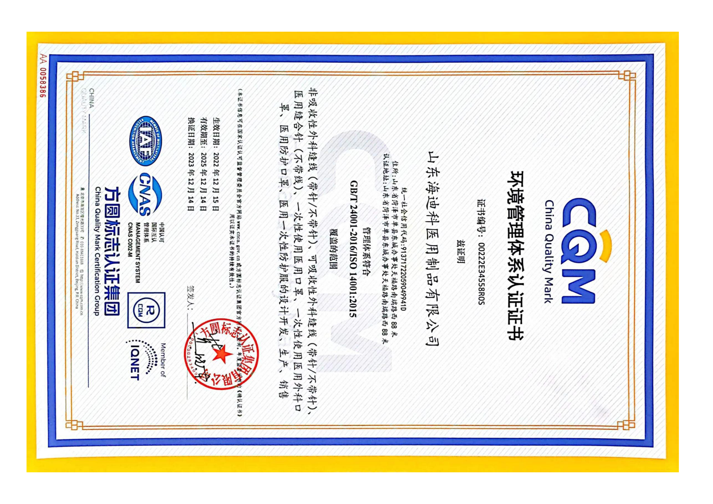 • 海迪科醫療器械生產許可證